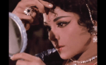 Here, it’s the point of view of a western man lost in the Madras film industry. The fumbling camera makes sudden movements, zooms on movie posters, scans and seems to spy actors faces in a proliferation of close-ups : thus, using a cut editing, it goes from a close-up on film poster to a close-up on the face of Padmini, the main actress, who is preparing herself for the shot. Here is a desire to understand this foreign cinema. However, in this extract, tamil popular cinema’s otherness seems to remain unreachable for the filmmaker.