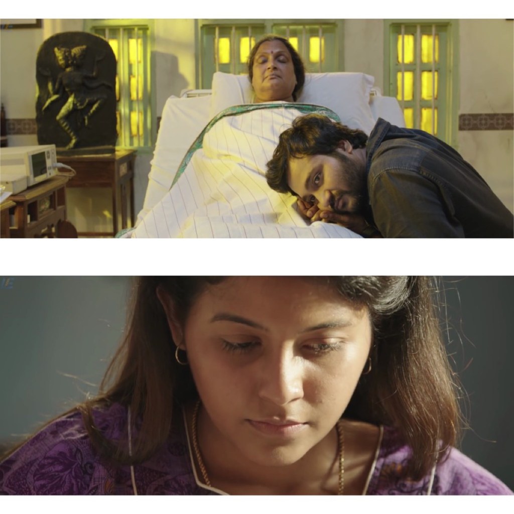 As a matter of fact, In Iraivi, male characters lead the narration of the story, their (bad) acts are the cause of the plot whereas women bear the effects of men’s decisions on the plot. Furthermore, there is a somehow manichean opposition between men and women in Iraivi. Men are dark, flawed, thorn between the good and the evil. On the contrary, women seem to have no flaws. All main male characters are shown aggressive, short tempered and selfish in their decisions whereas all female characters are loyal, responsible, virtuous and strong-willed, like impressive goddesses. Hence, the title of the movie. Indeed, the « goddess” figure is omnipresent in “lraivi” : think about the “robbery project” which is about stealing sculptures of goddesses ; think about the scene where the ill mother, unconscious in her hospital bed, is venerated like a divinity by her husband and sons who look like faithful devotees praying their goddess. Maybe that’s what bothers me with Iraivi even though | loved the movie, like this small stone in your shoe when you are having a nice walk : men characters seem more