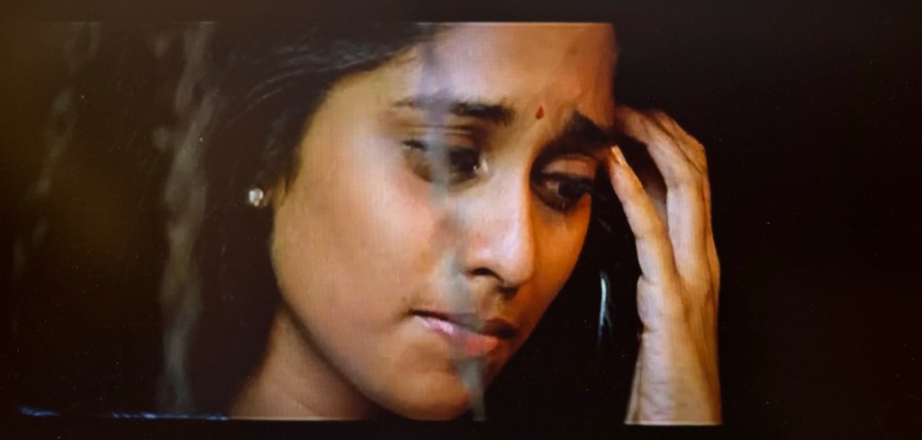 One can think that this class issue could be resolved after Karthik and Shakthi break up with their family to live together, but it actually resurfaces as the roots of the biggest clash in their nascent marriage. Thus, when Shakthi comes to convince Karthik that they must see her ill father, one can see how their opposite arguments are actually soaked in their social differences. Shakthi expresses her class guilt, reminding that her father is a simple railway employee who took loans to fulfill the dream to become a doctor : how could she abandon him when he needs a doctor ? On the opposite side, Karthik expresses his sense of honour and somehow, of class pride, (just like his father, you’ll notice), adamantly saying that he cannot brush aside the fact that her father slapped him in public when even his own father never slapped him. Interestingly, in this scene, the core issue is their relation to their respective father. Shakthi have inherited a mixed sense of gratitude and guilt from her quite close father (remember how she is sentimentally happy to see him before her secret wedding). Karthik have inherited a sense of honour and a class-impregnated ego from his quite distant father (remember how he desperately tries to escape him before his secret wedding).